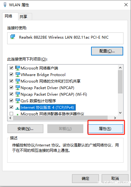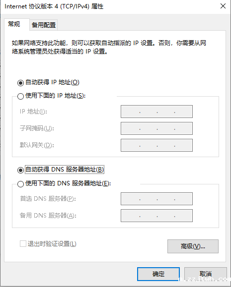 第三步、打开TCP/IPv4的属性,将dns地址修改为自动获取服务器地址