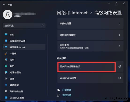 第三步、进入后,再在最下方找到更多网络适配器选项,打开进入网络适配器界面。