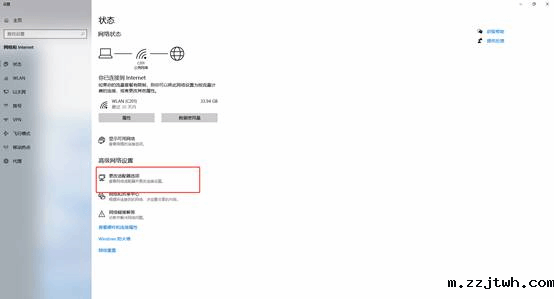 第二步、点击更改适配器选项,找到连上的wifi或连接的以太网更改此连接的设置