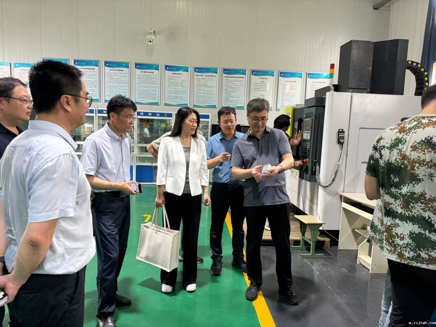 九游会老哥网禹州校区综合服务中心党支部书记王斌、工程训练中心主任(创新创业学院院长)王才东等对杨坤一行表示欢迎,并陪同实地参观了工程实践教学场所、电工电子实训中心、金工实训车间等,介绍了各实训场所的功能布局、设备设施、教学项目设置、教学模式及安全管理制度。