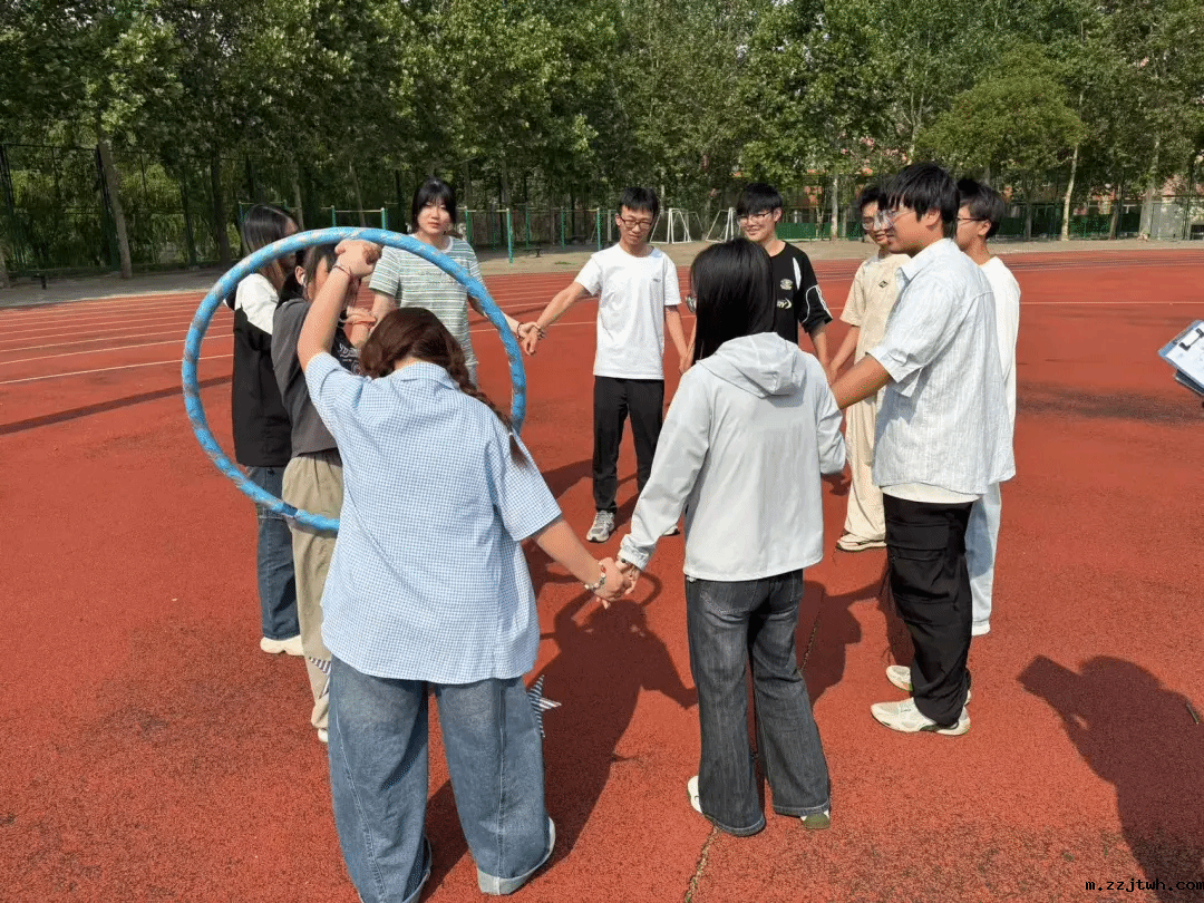 合力将身体穿过圆环呼啦圈,以集体智慧攻克难题,感受协作创造的强大力量。