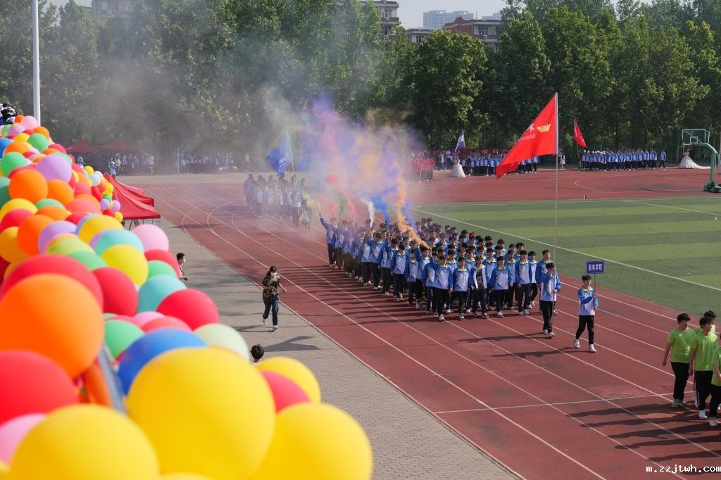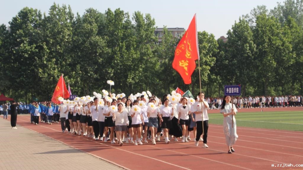 开幕式上,高举着校旗和会旗的仪仗队和红旗方队身姿昂扬,步履矫健,17个学院方阵别出心裁、热血高燃地走过主席台,彰显着中工学子昂扬向上、勇于进取的精神风采,博得阵阵掌声。党委学生工作部部长、学生处处长、学生资助管理中心主任方敬永为本次运动会致开幕词并宣布本届运动会开幕。他希望同学们能够在中工的大家庭中感受到彼此温暖的陪伴,体会到携手同行的力量,有能力用热爱与责任共同书写美好明天,在我校筹建河南电子科技大学的过程中绽放青春的光彩。材料与化工学院团委副书记张皖豫老师作为辅导员代表发言,新闻与传播学院广播221班韩烁铮同学作为参赛运动员代表言。开幕式的最后,630名同学带来青春激昂的团体操表演《向快乐出发》。