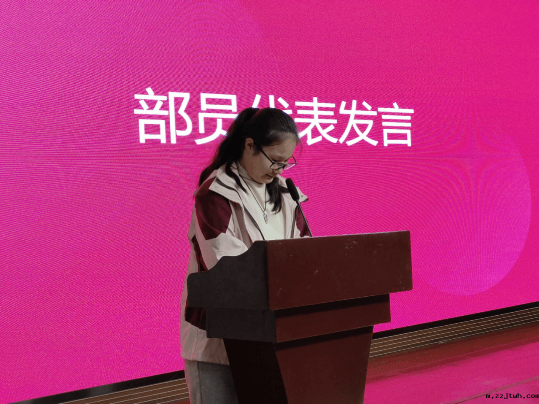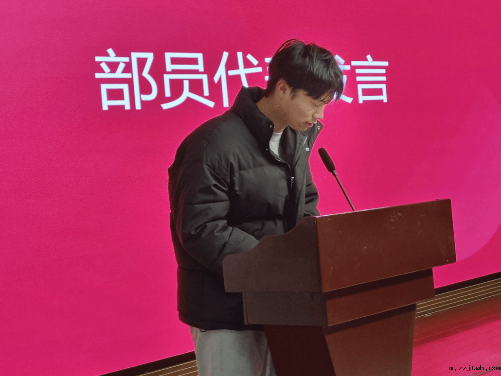 学习部、创新实践部、财管部、办公室、宣传部以及编辑部六大部门23级学生代表依次发言,各自详细地介绍部门职能分工及具体工作,并表达了对新成员加入的祝福与勉励。