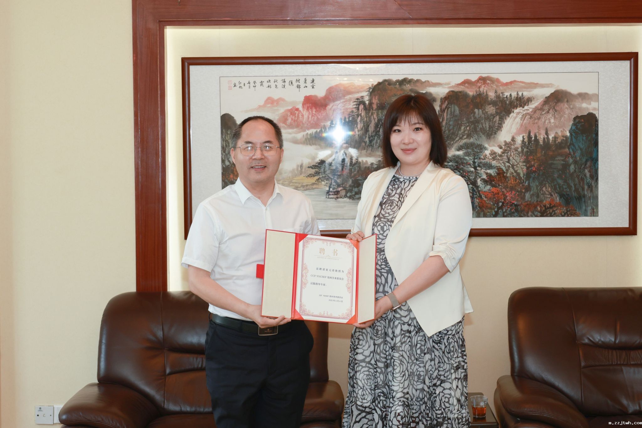 陆丽介绍CCF YOCSEF郑州分论坛基本情况及二十周年学术论坛的筹备工作,并向夏元清呈送邀请函,颁授“YOCSEF郑州议题指导委员会专家”聘书。